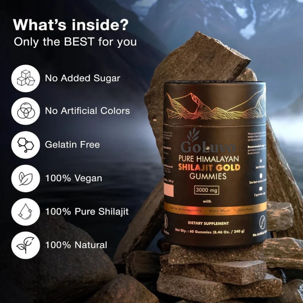 Packed with 3000 mg of pure Shilajit, these gummies help boost energy levels, enhance workout performance, and aid muscle recovery, making them an ideal companion for anyone looking to improve their overall physical wellness.